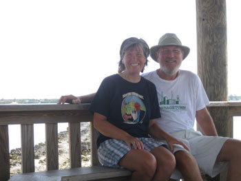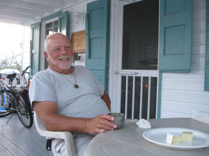 Our tour guide at the museum was an American. We started talking to her and discovered that she and her husband were part time cruisers who had bought and refurbished a home on the island. She mentioned that a few cruisers were dropping by her porch about 5 to “bend an elbowâ€. We were not sure if this was an invitation or not, but finally asked if we could come by. I also asked if Greg could bring some music, “he loves an audience,†I said.