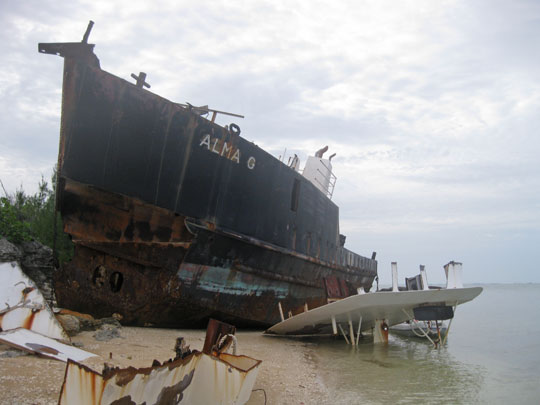 After we finally found some good holding off of Cistern Cay we dinghied ashore to check out the shipwreck. I took some pictures and we walked down the coastline. There is a nice grove of coconut trees here, which I will remember the next time I have the itch to go on a wild coconut forage.
