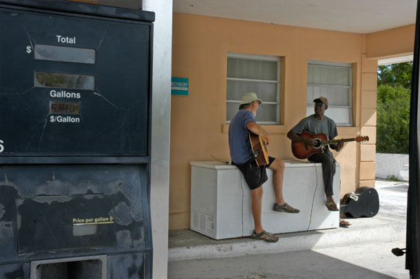 When the wind is settled we get out a little. We have met other boaters and have joined them for a happy hour on their catamaran. Greg met a guitar player in town and jammed with him at the local gas station. We also spend time doing boat maintenance and mapping out our trip to the Exumas.