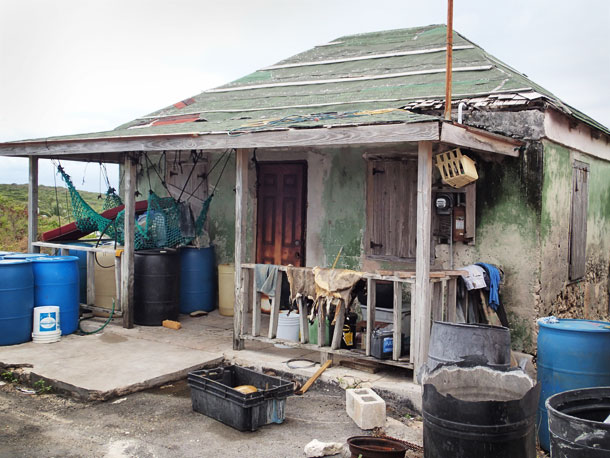 Duwan and I explore some of Ragged Island. It’s a big island. We briefly meet Percy who lives near the south side beach. He used to have a bar inside an airplane there, but it’s closed now. We visit a little with Maxine. We’ve heard that she’s in her seventies, but that’s hard to swallow. She goes out often to gather conch and spear fish.