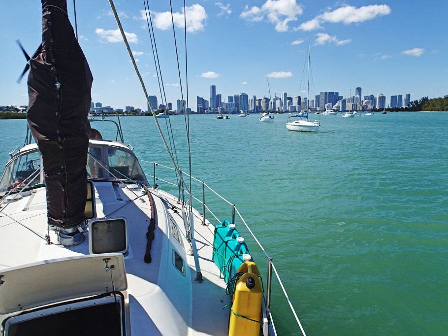 They love the water here in Miami. They sail on it, swim in it, paddle board on it, kayak on it, row on it, land their planes on it, anchor their giganto power boats on it, race their power boats on it, and water ski on it. Oh, and they jet ski on it. They LOVE to jet ski on it. They ride in packs racing each other through the anchorage, with the alpha jet skier speeding straight ahead, and the followers cutting back and forth across his wake churning up other random wakes. And us poor sailors are like the old man down the street shaking his fist and yelling at the kids to get off his lawn, except we are yelling “get off my water!†as they cut a wake next to our boats causing them to pitch, heave, and roll uncontrollably while our dinner flies off the stove down below. Yes, the water is open territory down here. It’s always a party. Sometimes smack dab in the middle of the ICW. Seriously, we had to navigate out of the waterway around a power boat anchored IN the channel.
