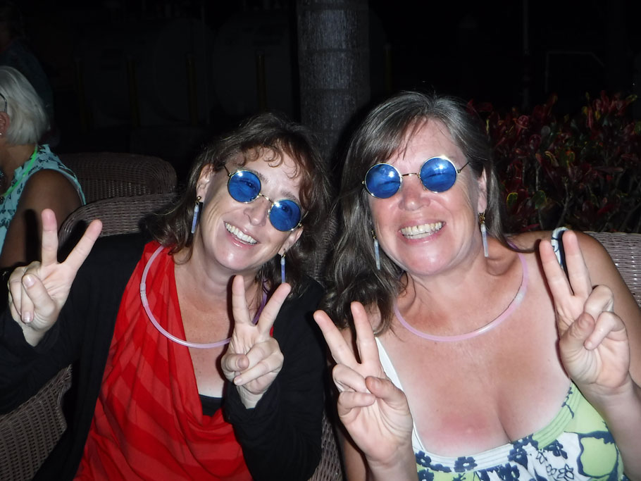 Saturday was The 60s night with groovy round sunglasses, glow ring necklaces and bracelets, food, beer, and a Beatles cover band. Sunday was a lay day. Monday was Country night with cowboy hats, sheriff stars, bandanas, food, beer, and a Country and Western band. Tuesday was a lay day – but that was fine because its always Taco Tuesday at JRs. Wednesday was dinghy races during the afternoon, and a wine tasting, food, beer, and the band everyone liked from last year in the evening. And, finally, Thursday was the holiday we had been building up to, Thanksgiving, with, of course, more food and drink.