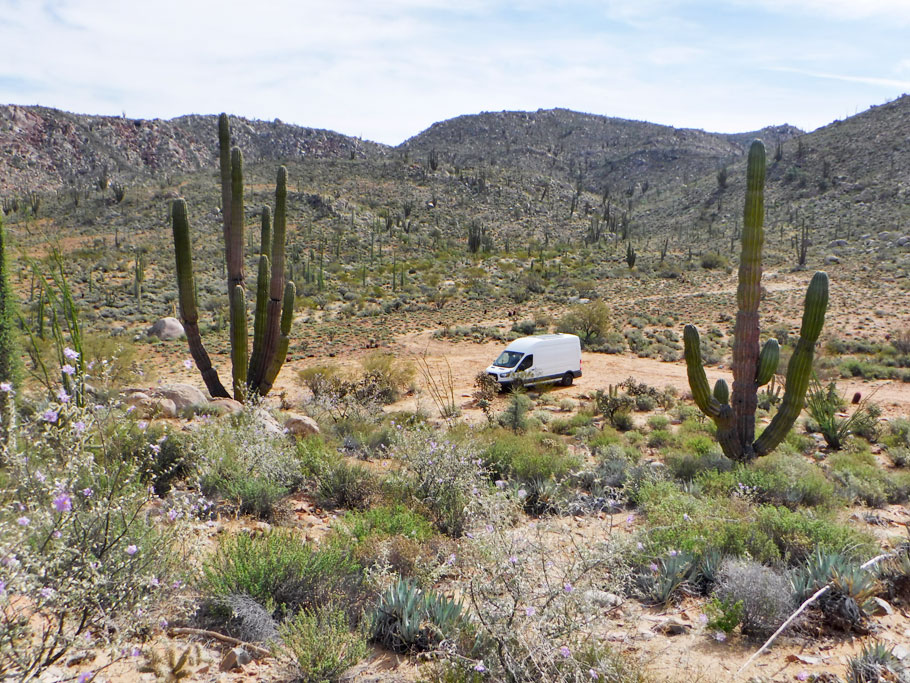 The next morning we went to Cataviña to see cave paintings. We drove down some more bad road, and pulled off into the desert to camp.