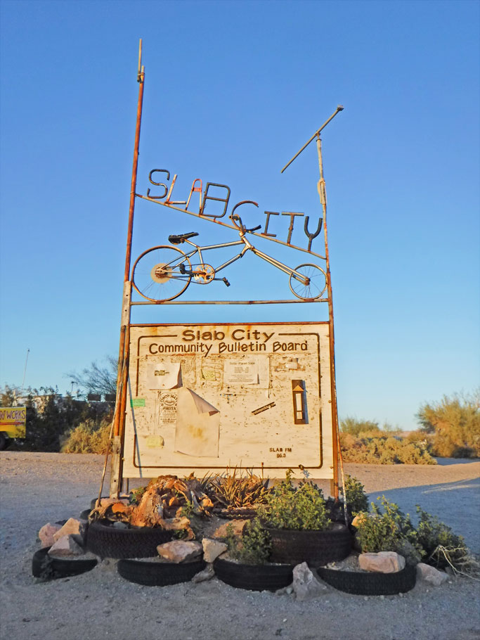 There are maybe 150 souls who brave the summer temps to live here year round. Hundreds more RVing snowbirds come south to enjoy the winters. We met some friendly folks. Who knows? Maybe someday I’ll be asking you for a ride to The Slabs.