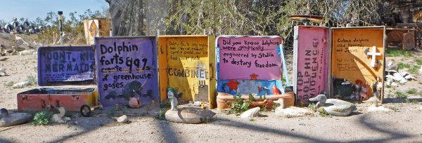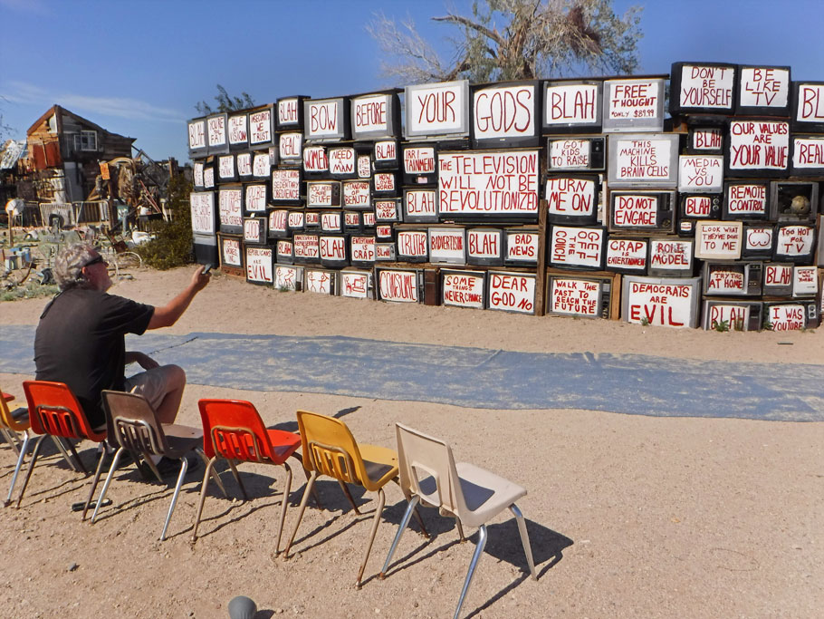 We’re back in Slab City near East Jesus. This area is called West Satan, possibly as a response to the hoity toity state sanctioned museum in East Jesus. Here is some art from West Satan.