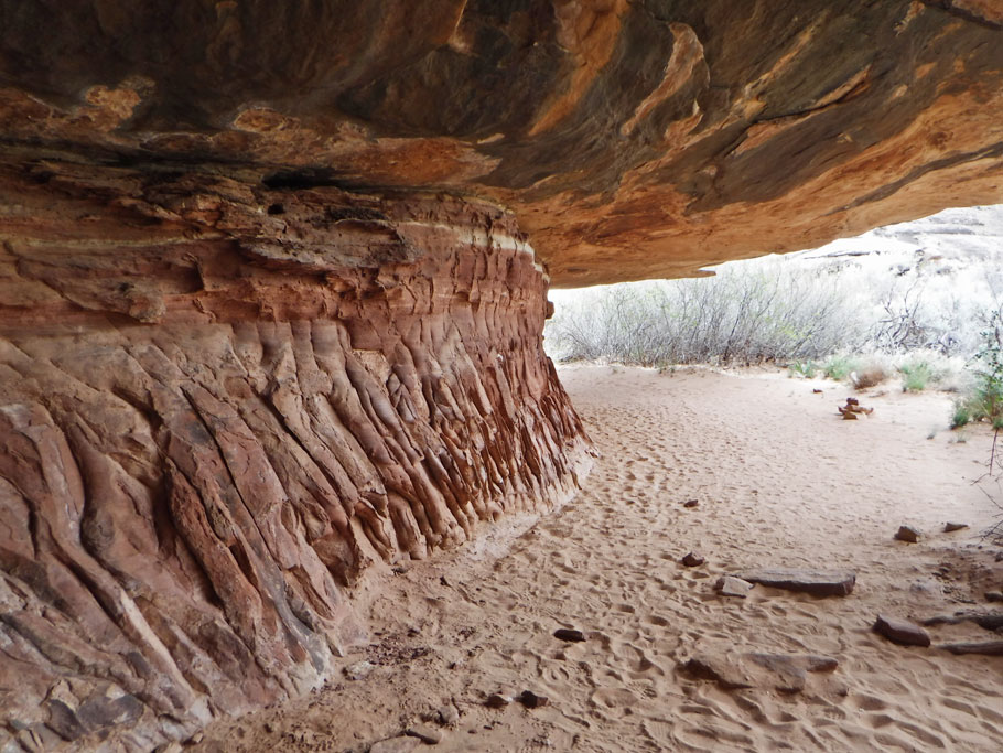 Our first hike was to Cave Spring, where erosion of a softer under layer has left overhangs like this. One has a spring which has been visited by people for thousands of years.