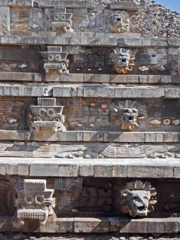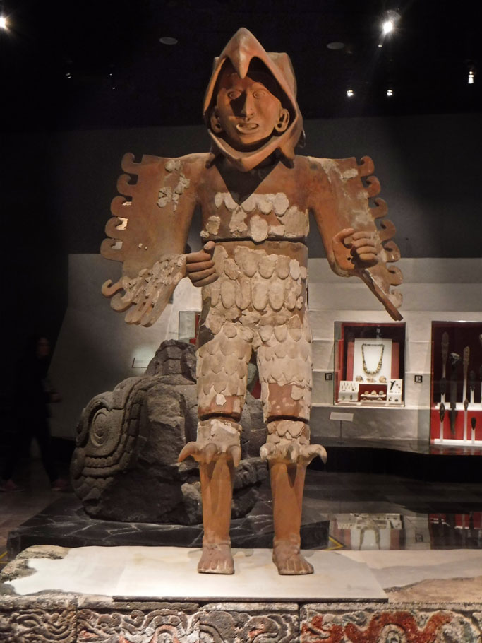 The Museum of Anthropology we visited in Mexico City uses artifacts and displays to describe this era and those that follow. The Museo is full of information. Thankfully, only a fraction of it is translated into English, or I’d still be there reading. The Teotihuacán ruins near Mexico City are also pre-Aztec.