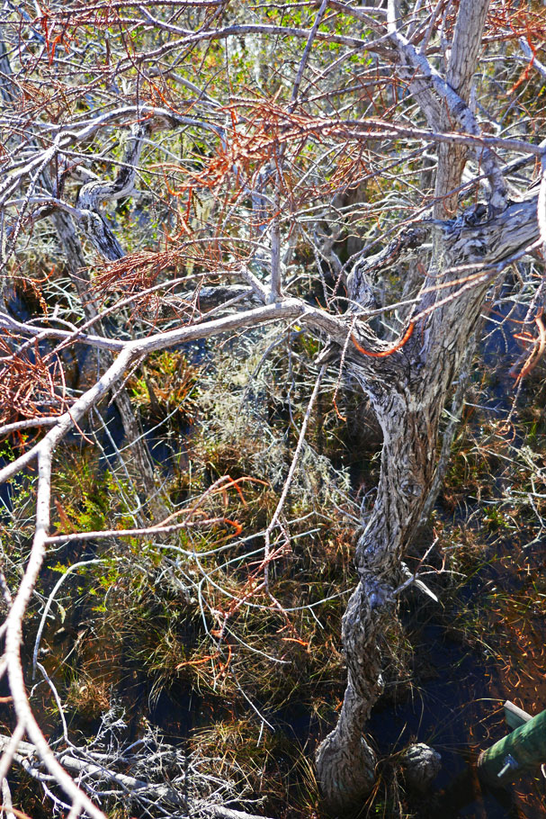 He had been lost in the swamp for 7 days and nights when in order to escape the relentless bugs he wandered into the dwarf cypress grove protected by the Medicine man’s magic. Here he fell asleep.