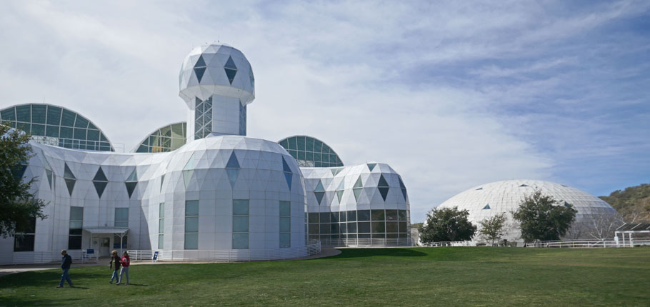 Over the last three years that we have been visiting Tucson, I have been seeing signs advertising the Biosphere 2. I lived in Tucson some 30 years ago when this biosphere was being built. It is a much much smaller version of the biosphere we all know and love – you know, the planet Earth. It was very controversial back then – the cost, the unclear mission, the wacky people in charge – but in 1991 eight people entered this great glass structure containing a pared-down Earth and were locked in for 2 years.