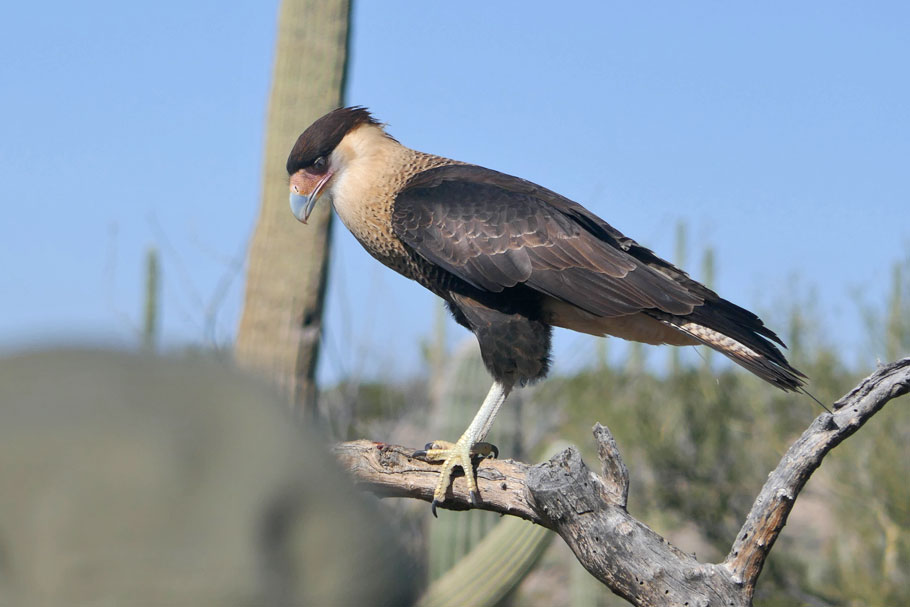 Crested Caracara. When Caracaras get excited their blue beak tips get brighter.