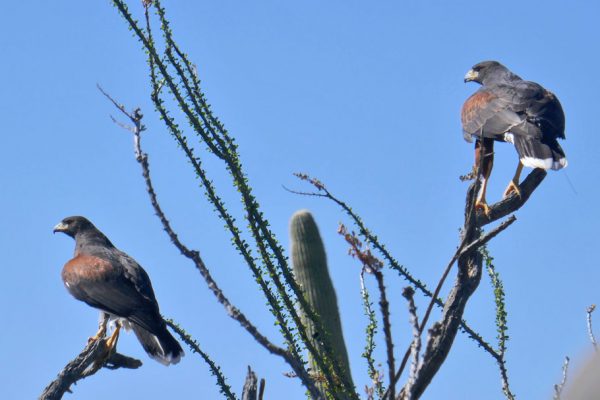 Hawks usually hunt alone. In Arizona, though, Harris Hawks have adapted to hunt in groups.