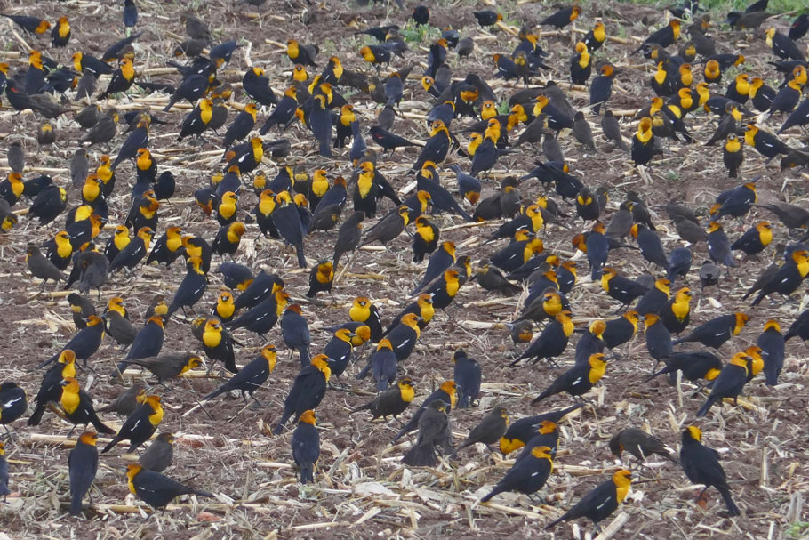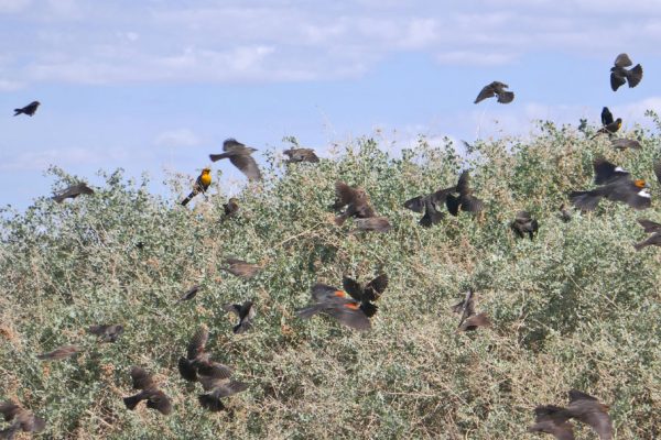 There were also Red-winged Blackbirds among the Yellow-headed ones. You can see one in flight just below the center in this pic.