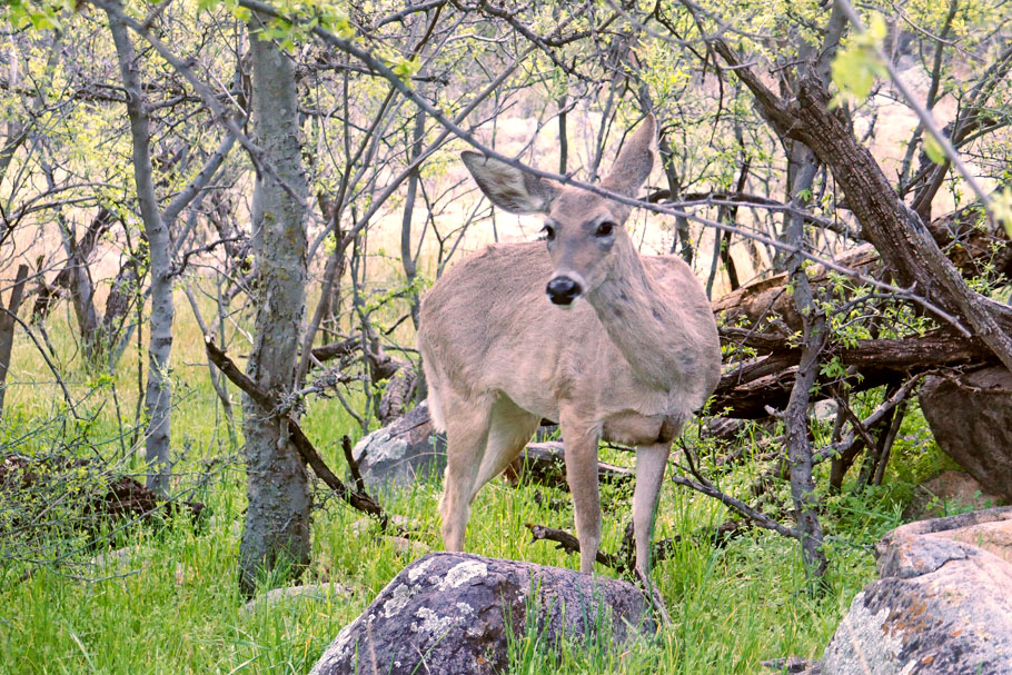 The quest for water… Not so easy these days. I would have asked the camp hosts (from 6 feet away), whether we could have driven in to get some water. We were once met by a roped off campground where we hoped to get drinking water, but nobody was there to ask (and we didn’t have jugs or a hand truck), so we moved on to another potential an hour away. Just as we did, a sheriff drove by at this very remote location! We were happy to not have removed the barricades.