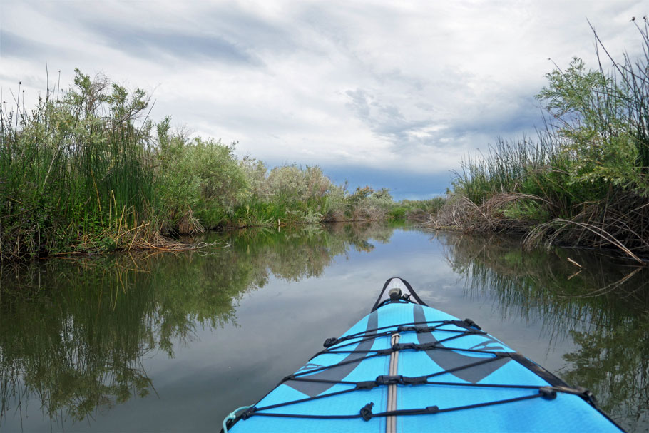 It was a little disappointing that we didn’t get to kayak on the Snake River. When we were at Swan Falls the weather turned bad on the days we had lined up for kayaking and at Celebration Park, north of the Swan Falls dam, the current ran too fast for a leisurely paddle. So I pulled up the map on my phone and looked for a suitable spot of water where we could launch Pirogue Bleue (our inflatable kayak) at our next stop.