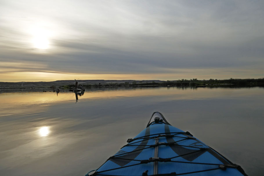 What I didn’t realize when I saw Bruneau Arm on the map was that it was fed by Bruneau River Delta. River Delta? Are we still in Idaho? The delta was just the kind of kayaking I love – narrow meandering paths through dense vegetation. Up at the crack of dawn the next morning we put Pirogue Bleue in the water and paddled off into the Idaho reeds. There we found a variety of birds but the most surprising thing we found on our outing was all the “shorebirds.” I don’t think we have ever seen as many “shorebirds” on the actual seashore. Another Idaho surprise. I’ll let the pictures tell the rest of the story.