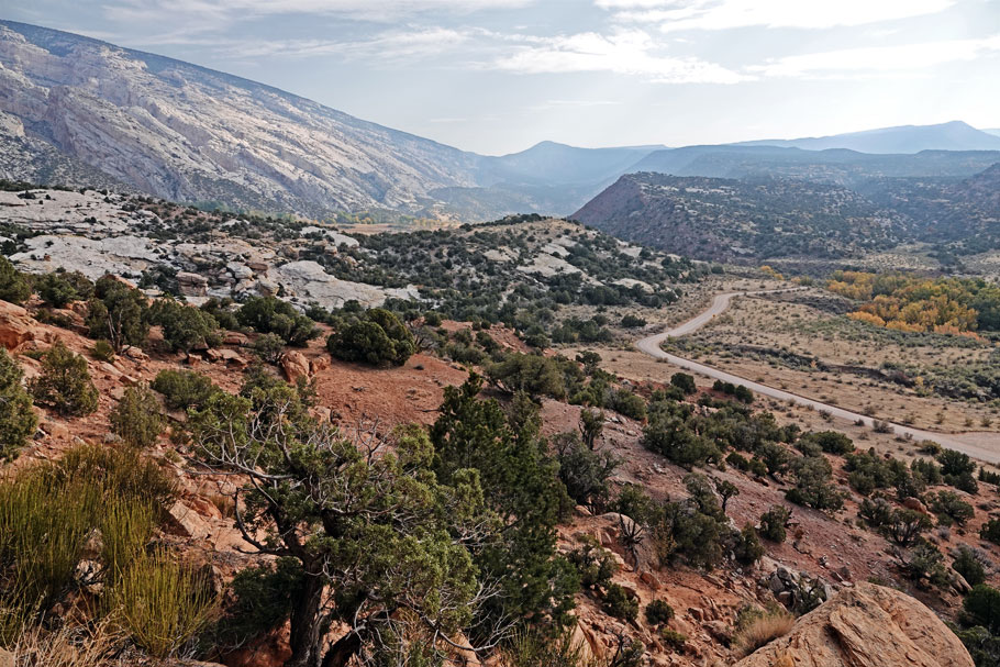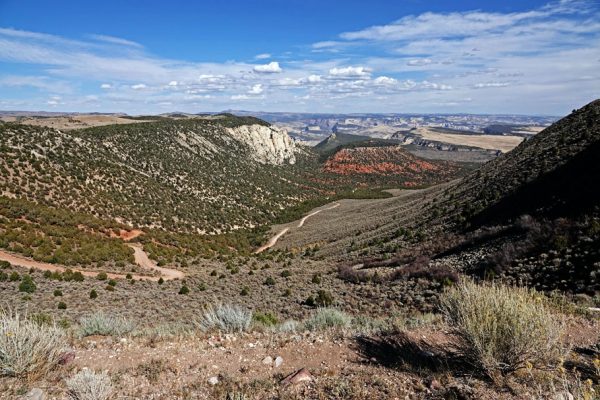 View of Echo Park Road, one of the back-country, high-clearance trails through the eastern side of the monument.