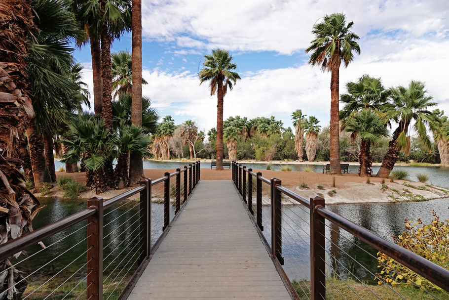 In 1873 a ranch and a health resort were built at the site of what is now Agua Caliente Park. In 1984 local businessman Roy P. Dragan donated over $200,000 towards the purchase of the property and today the 101-acre park features a warm spring and several ponds. Wide paved and gravel paths wander past the ponds and through a scraggly desert landscape. The ranch house still stands and serves as a visitor center and art gallery. Unfortunately, the visitor center and gallery were closed during our visit. Normally there are walks, talks, and other activities in the park but they were all suspended due to the pandemic.