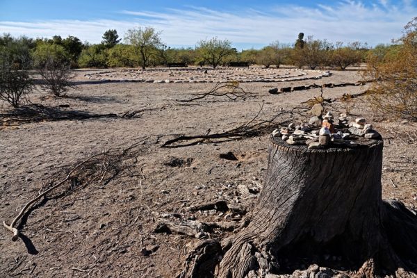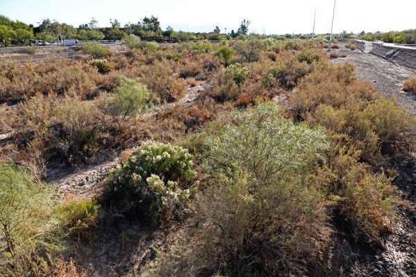 Just a short walk down the road from where we were camped at our friends’ house is the Rio Vista Natural Resource Park and Rillito River Park. Rio Vista sits along The Loop, a 131-mile paved pedestrian/bike/equestrian path that circles the city. It has a playground, ramadas, and a large grassy field where people picnic and meet for “yapping hour” with their dogs in the evening. It also has a small maintained but ungroomed section with interconnecting paths that wander through desert scrub and with a few trees here and there.