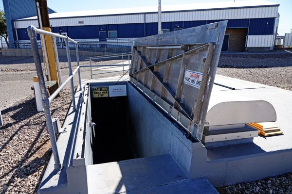 A large tank near the silo holds water to be released during the launch sequence. If the engines ignite the water will turn to steam, baffling the sound waves that would vibrate the rocket apart during launch.