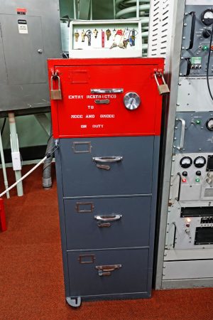 In the silo is a Titan missile, over 100 feet tall. In the nose is a nuclear warhead. Half of the multi-stage rocket’s weight comes from volatile liquid propellants, kept from reacting with each other by butterfly valves. The Titan’s brain is powered by two 24V batteries that contain no electrolytic solution. The fluid is stored separately, and fed into the batteries in the event that the launch sequence is started.