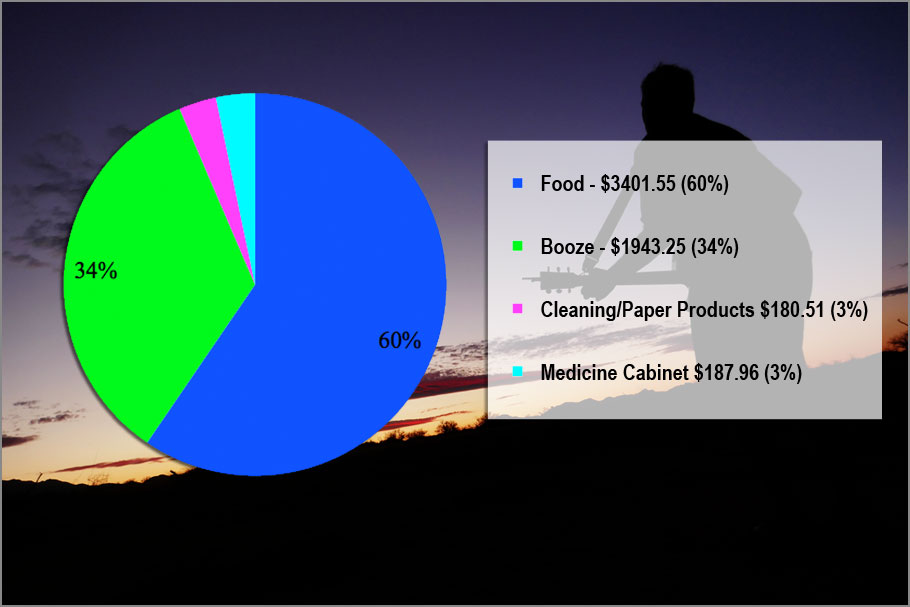 Here Food clearly dominates. We averaged $283.46 a month on food. Not too bad for two people.