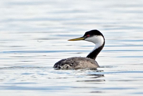 Sitting on a hill above the lake we could sit in the van and peer down into a small body of water separate but adjacent to the lake. The pond was always full of activity. Egrets (Snowy and Great) gleamed in their favorite spots poking around for food. Ducks sunned themselves on a log. Coots paddled about. A Belted Kingfisher looked for good eats from his favorite perch above the water. Raptors circled overhead – which was often “underhead” from our spot. A White-faced ibis foraged alongside the Great Egret. Swallows filled the morning skies. It was like birder TV.