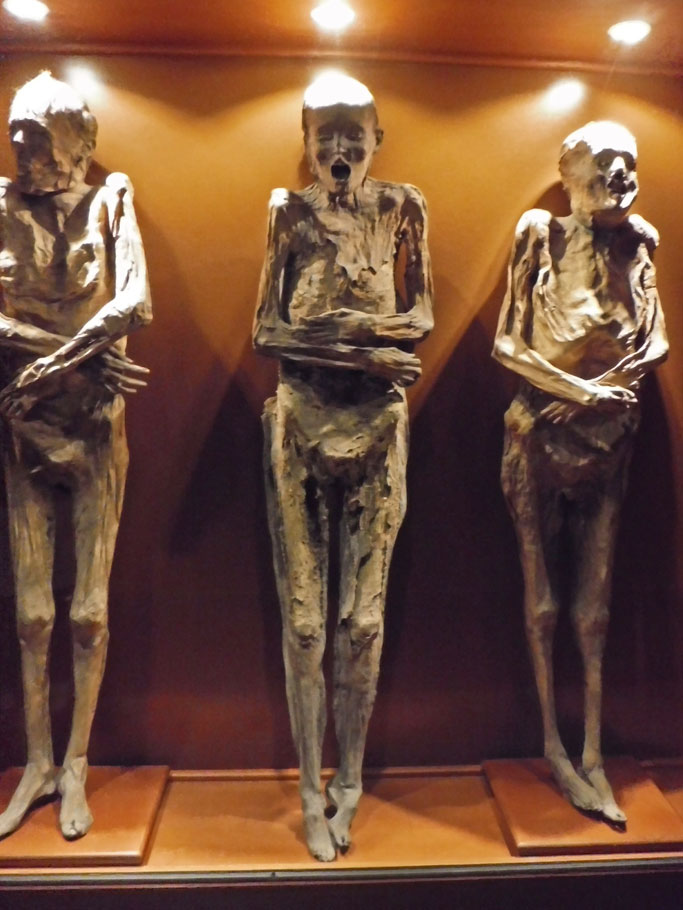 Warning – these aren’t your Egyptian mummies all wrapped up in linen bandages. These mummies are naked – well, actually some of them are clothed which actually makes them a little creepier. Also – there are babies.
